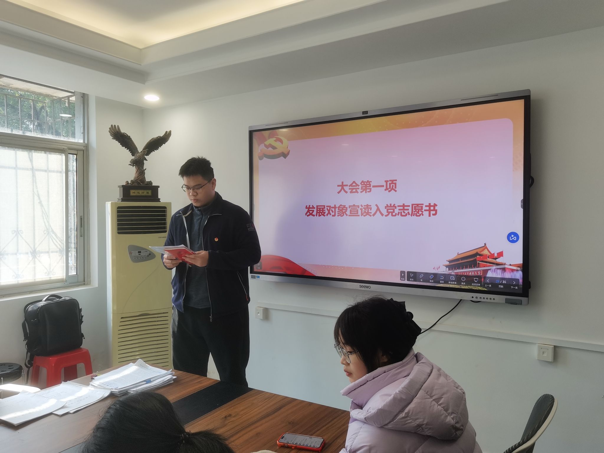 随后,全体同志在屈璐老师的领读下激情满怀地重温了入党誓词。在朗朗的宣誓中,大家仿佛回到了那个革命年代,感受到了先辈们的英勇无畏和坚定信念。入党誓词中充满了对共产主义理想的崇高追求,也提醒着每一位党员要始终坚守初心和使命,始终保持共产党员的先进性和纯洁性。四位同志表示以后将继续坚定理想信念,加强政治理论学习,为实现中华民族伟大复兴的中国梦而努力奋斗。