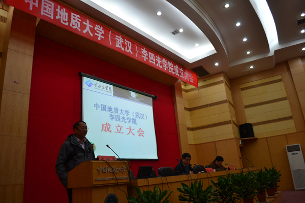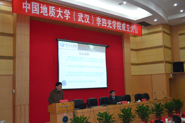 2012年11月15日下午四点,beat365英国官方网站成立大会在学校迎宾楼学术交流中心报告厅召开。校党委书记郝翔、副校长赖旭龙、组织部、宣传部、人事处、学生工作处、校团委、教务处、地球科学学院、地球物理与空间信息学院、信息工程学院、数理学院、外国语学院等部门、学院的主管领导应邀出席。beat365英国官方网站2012级地球科学菁英班全体新生、李四光计划在校学生及beat365英国官方网站全体教职员工参加了此次成立大会。