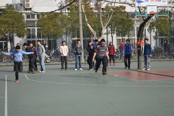 第一场是三人四足比赛,赛前同学们积极准备,虽然有时会摔倒,但是为了各自集体的荣誉,大家奋勇拼搏,力争第一。比赛期间,两班竞争十分激烈,互不相让,最后胜利的果实由更胜一筹的一班队员夺得。但是二班的同学并没有放弃,而是卯足了劲,在第二场的跑步跳绳中,勇夺冠军,扳回一局。可是激烈的竞争还远没有结束,在第三局乒乓球接力中,二班越战越勇,继续夺取冠军,这让二班的同学信心大增,但一班的同学没有被一时的“失败”所影响,心中那团火反而越烧越旺。在最后的拔河比赛中,一班以连胜两局的绝对优势获胜。