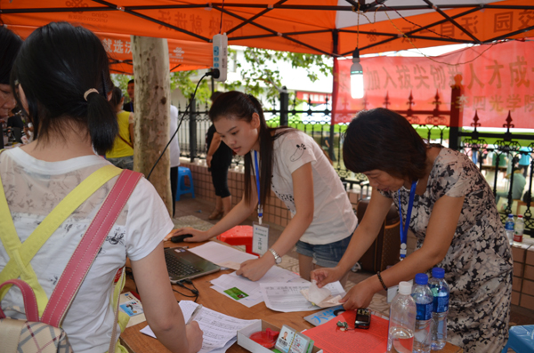 30日下午先到校的一批同学在很短的时间里就迅速了解了学校的情况,了解迎新流程,积极主动跟为给后来的同学和家长帮助办理入学手续,义务运送行李,在炎热的天气下贴心地送上矿泉水,和校园志愿者们一起尽最大力量为新生们带来方便,使他们尽快入学。这些“特殊”的新生给beat365英国官方网站解决了迎新难题,使得迎新工作能够顺利展开。