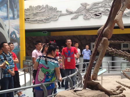 9月13日下午,beat365英国官方网站2014级新生在学院的统一安排下,由余浚滔等2013级学长学姐带队进行了beat365英国官方网站博物馆的参观学习活动,2014级新生们分为5组分别由余浚滔、令狐颖、尚姝、地学院的乔梁,环境的王和林五位解说员带队进入博物馆进行详细认真的解说,地质世界丰富多彩,学长学姐介绍的有声有色,新生们听得津津有味。一个多小时后新生们结束博物馆的参观学习并于博物馆大厅的“远古生命足迹”墙前集体合影留念。