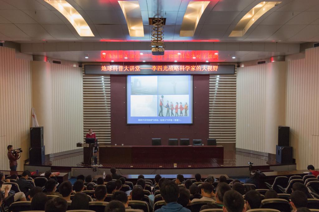 4月27日下午,李四光先生的外孙女邹宗平女士在我校地球科普大讲堂,为beat3652015、2016级学子带来以“李四光战略科学家的大视野——减少煤炭燃烧,开发清洁能源”为主题的精彩报告。