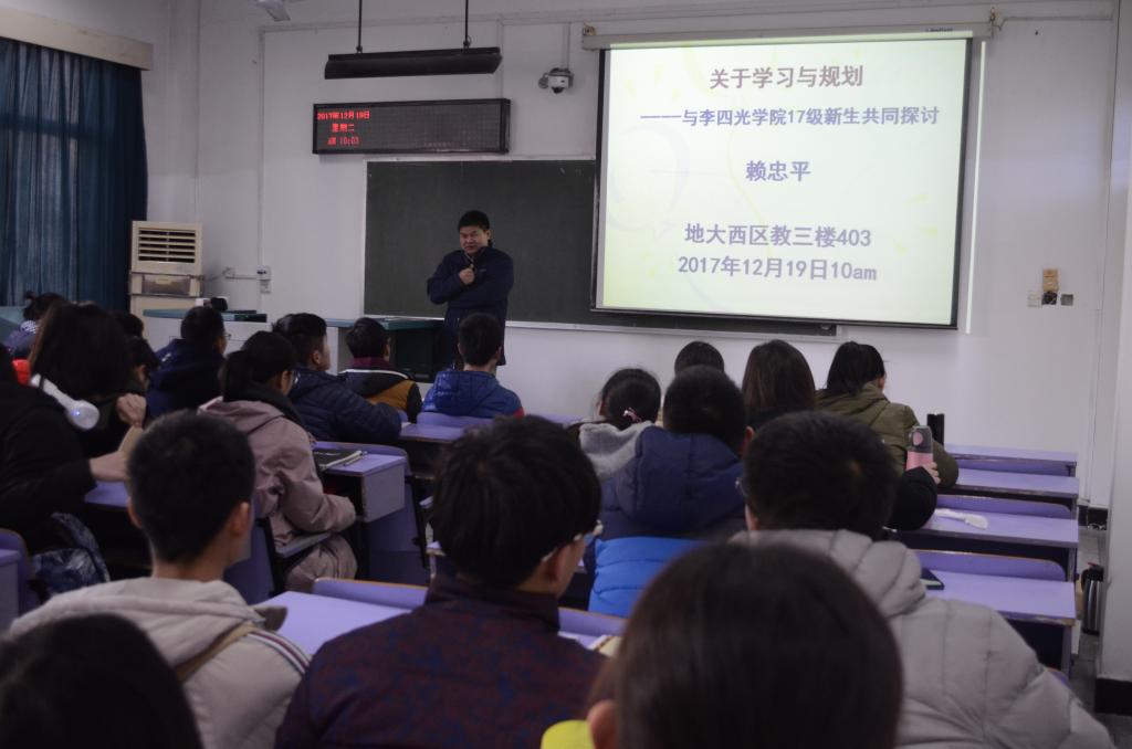 12月19日上午10:00,beat365英国官方网站2017年地球科学菁英班“与名师面对面”系列讲座在教三楼403顺利举行,地球科学学院赖忠平老师为beat365菁英班学生带来“关于学习与规划”的主题讲座,beat3652017级全体学生参加。