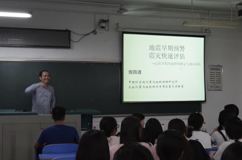 倪四道所长以“地震早期预警,震灾快速评估”为题为17级新生带来大学的第一课。倪老师从地震的防、避、救三个维度,借用生动有趣的语言,为同学们打开了探索地球科学奥秘的大门,指明了努力方向,让同学们受益匪浅。