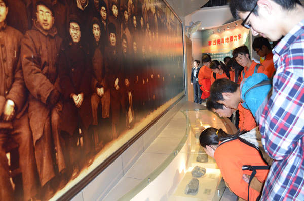 参观活动结束后,beat365英国官方网站全体师生在李四光先生的塑像前合影,立志向李四光先生学习,为中国地球科学研究事业贡献自己的青春和力量,为实现“中国梦”而努力奋斗。