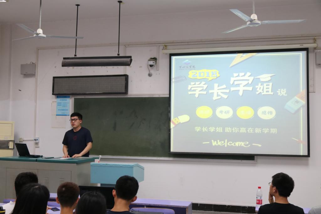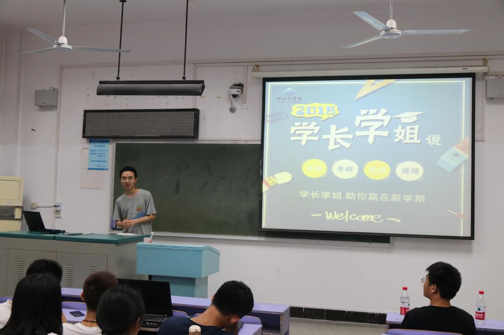 随后进行分享的是已保研至中国科学院遥感与数字地球研究所地图学与地理信息系统专业的王金晓同学。他主要结合自己的经历对学弟学妹提出一些告诫,大一大二时要早做规划,促使自己一直向着目标前进,不会因迷茫前路而庸碌当前。