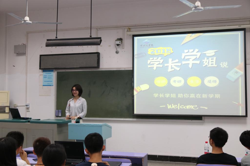 第三个进行分享的是已保研至复旦大学大气科学研究院环境科学专业的詹碧欣同学。她主要提出三点建议:①明确自己要做什么,多去尝试来代替空想;②多给自己留条后路,并且分享了自己当时保研就业两手准备的经历;③要全方位了解导师,再做决定。