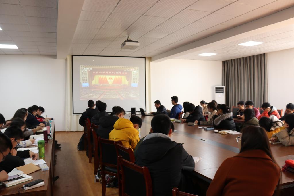 12月18日上午10时,庆祝改革开放40周年大会在人民大会堂隆重举行。我院师生在行政楼501会议室集中收看了大会的直播。