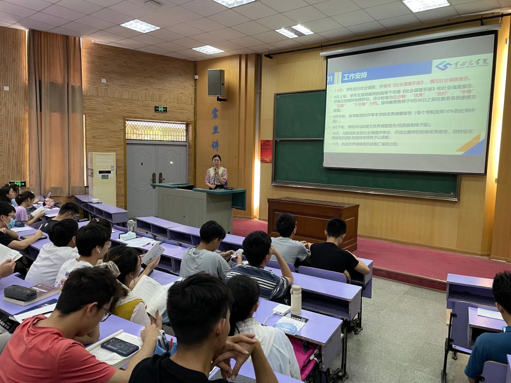 2021年6月25日中午,beat365英国官方网站2021年暑期实习动员大会暨社会调查和社会实践布置会在教三楼111室顺利举行。学院辅导员李若萌、陈思静以及beat365英国官方网站2018级、2019级、2020级全体学生参加了会议。