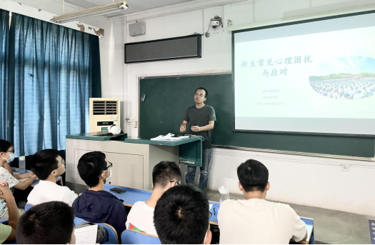 图8.学校心理咨询中心黄海老师与2021级新生进行交流
