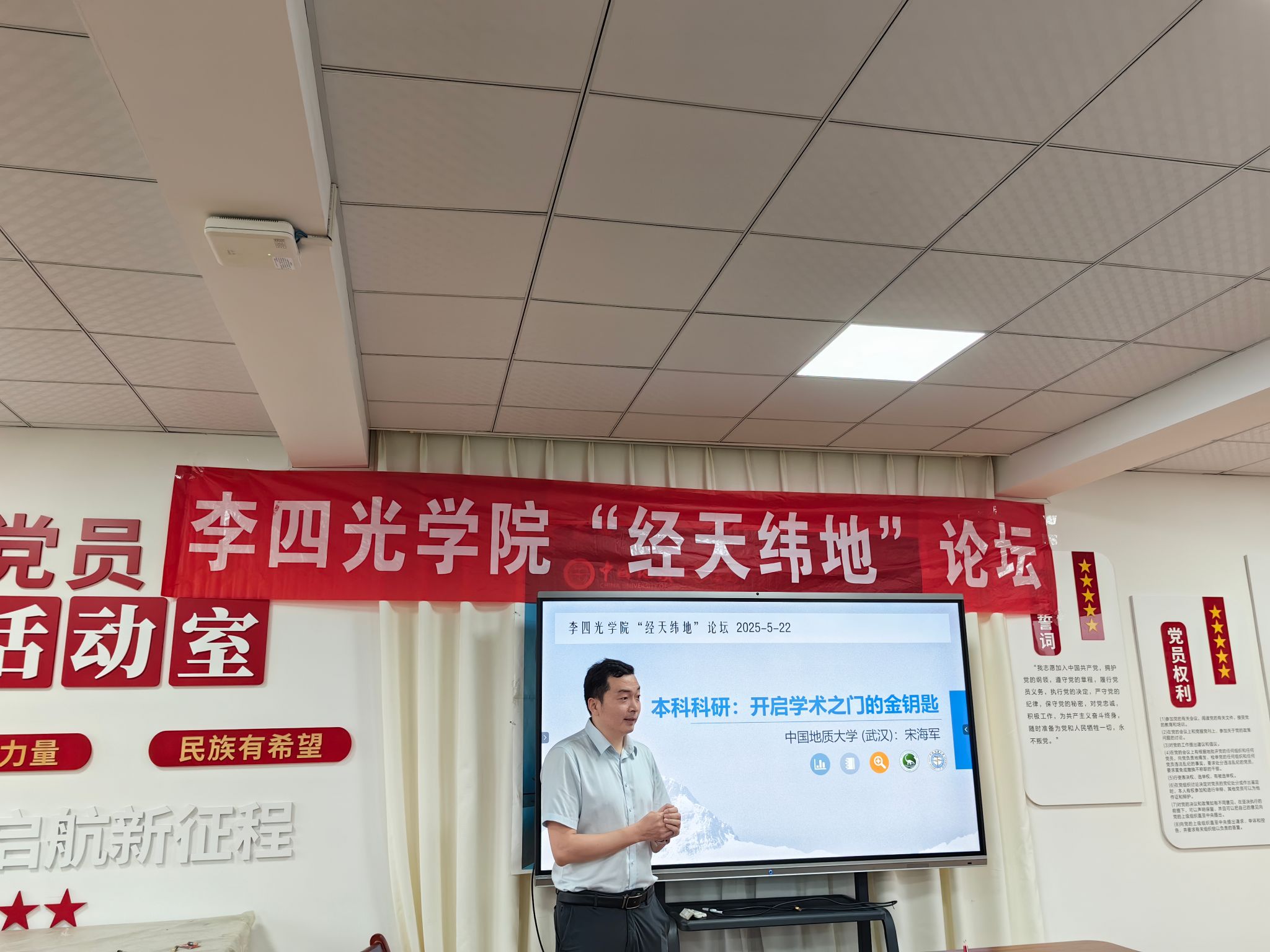 为切实增强beat365英国官方网站学生的学风建设,营造良好的科研氛围,beat365英国官方网站自2024年起在院长谢树成院士的建议下,打造全新“经天纬地”论坛,其“天”代表名师大家,“地”则代表朋辈引领,希望通过二者的结合,以行业大师的成长路径、优秀学长学姐的个人经历分享为主,让同学们像优秀典型学习,聚焦成长道路上的挫折教育,增强同学们应对困难的能力,最终践行个人梦想。5月22日下午,beat365英国官方网站第四期“经天纬地”论坛在行政楼501会议室召开。本次论坛的主讲嘉宾为beat365英国官方网站(武汉)地球科学学院的宋海军教授。