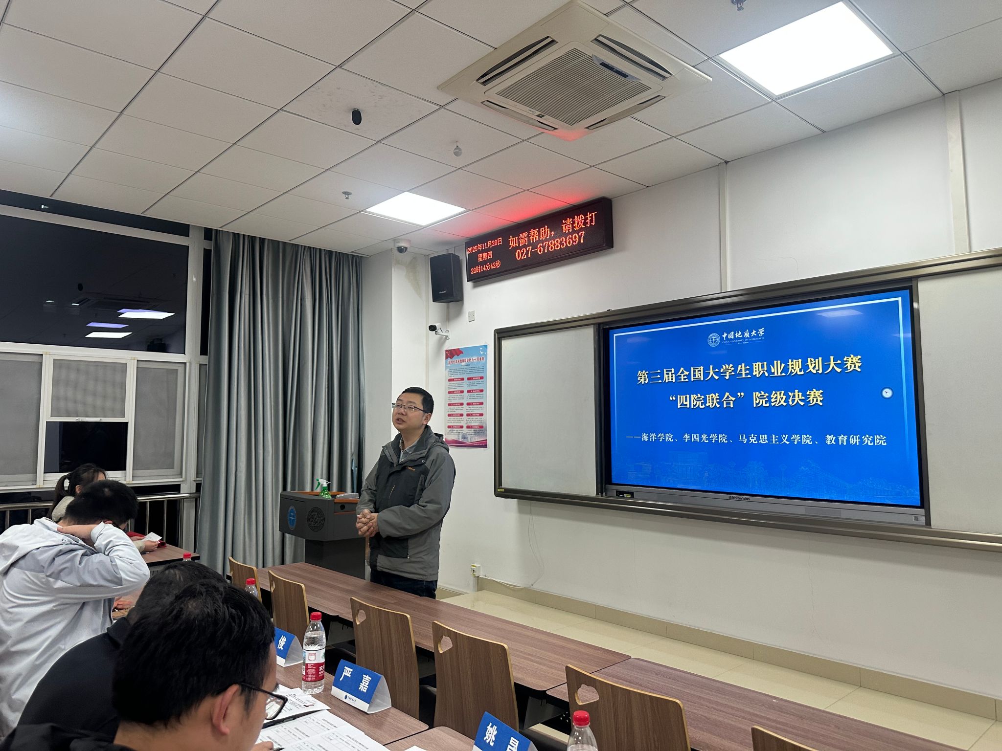 为深化高校生涯教育内涵建设,强化就业指导服务实效,引导大学生树立科学职业观与发展观,11月20日晚,由马克思主义学院、海洋学院、beat365英国官方网站、教育研究院联合主办的第三届大学生职业规划大赛决赛在东区综合楼顺利落幕。经过院级初赛、专题培训等多轮严格筛选与激烈角逐,来自四院的12名优秀学子从众多参赛者中脱颖而出,在决赛舞台上充分展现了新时代青年的职业追求与青春担当。