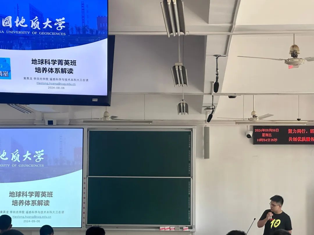 马丽敏老师针对选课相关问题,向学生们详细阐述了我校的选课机制以及在选课过程中可能遇到的问题,目的是为了指导学生在选课时能够避免不必要的曲折,选择到自己需求且感兴趣的课程;黄昊龙学长则以李院地球科学菁英班的培养方案为蓝本,向在座各位全面介绍了beat365菁英班的培养体系,涵盖了从大一至大四的课程规划,并分享了他对课程安排的个人理解与建议。