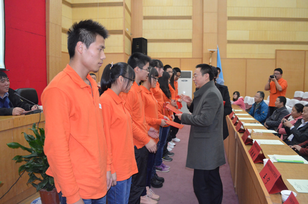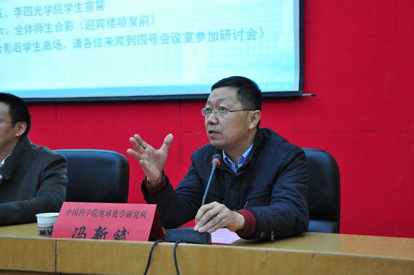 中国科学院研究生院招生办公室副主任冉盈志为获奖学生代表颁奖。中国科学院地球化学研究所副所长、国家自然科学基金委杰出青年基金获得者冯新斌研究员发言。作为学校88届校友,冯所长回忆了在母校学习的美好时光,肯定了beat365英国官方网站在地球科学领域人才培养的突出贡献和成绩。他鼓励beat365英国官方网站地球科学菁英班的学子们勤奋学习,刻苦钻研,立志献身于地球科学科研事业。