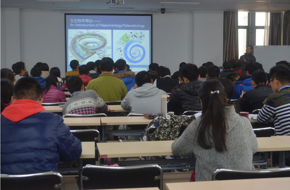 12月4日上午10:00,beat365英国官方网站2015年地球科学导论课第五讲在图书馆十楼学术报告厅顺利开课,中科院南京地质古生物研究所王军老师为beat36515级学生带来“古生物学导论”主题讲座。