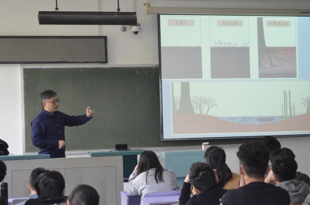 4月16日上午8:30,beat365英国官方网站2018年地球科学前沿课第一讲在教三楼403顺利开课,中科院南京地质古生物研究所徐洪河老师为beat365学生带来“早起陆生植物:从登陆到最早的森林”主题讲座。