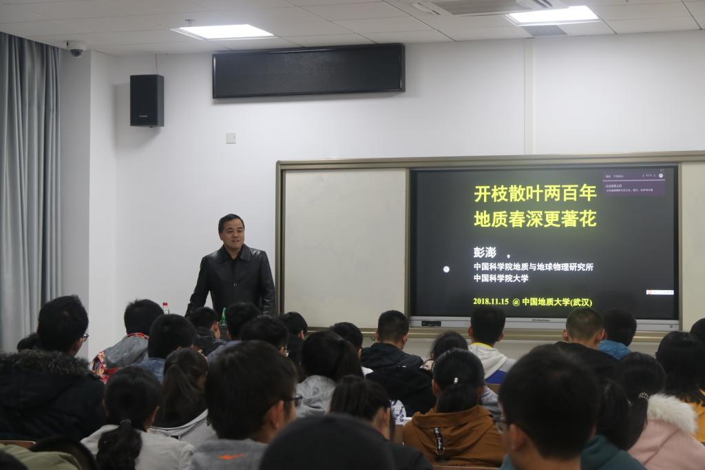 11月15日下午16:00,beat365英国官方网站2018年地球科学导论课第一讲在东区综合教学楼B0106室顺利开课,中科院地质与地球物理研究所彭澎老师为beat3652018级学生带来“开枝散叶两百年,地质春深更著花”主题讲座。