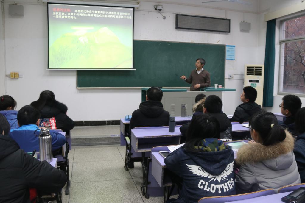 12月7日上午8:00,beat365英国官方网站2018年地球科学导论课第三讲在教三楼202教室顺利开课,中科院遥感与数字地球研究所柳钦火老师为beat36518级学生带来“遥感科学技术导论”主题讲座。