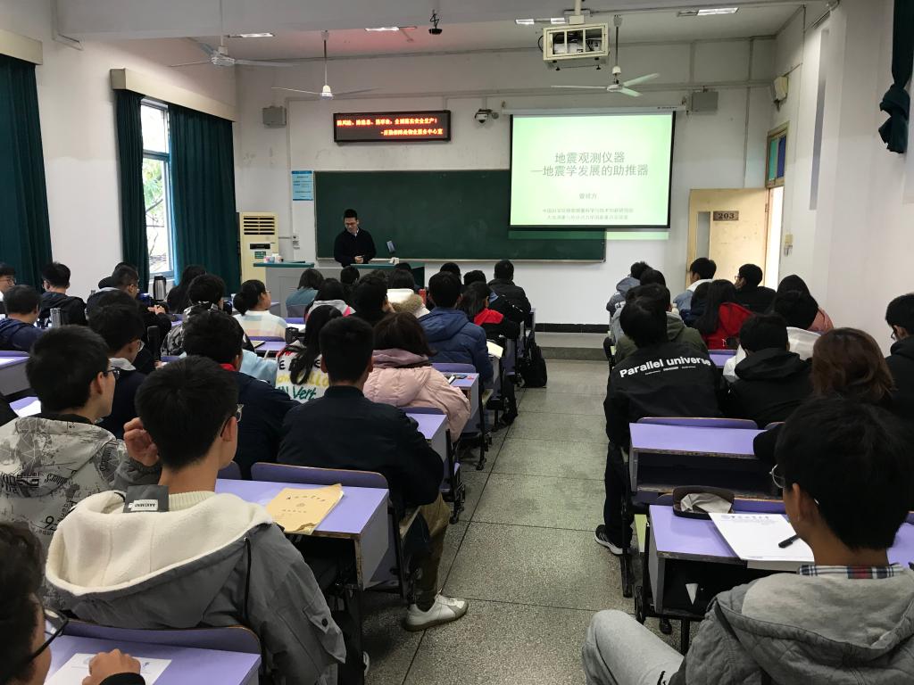 11月19日上午8:00,beat365英国官方网站2019年地球科学导论课第一讲在教三楼203教室顺利开课,中科院精密测量科学与技术创新研究院曾祥方老师为beat36519级学生带来“地震观测技术--地震学发展的助推器”为主题的报告。